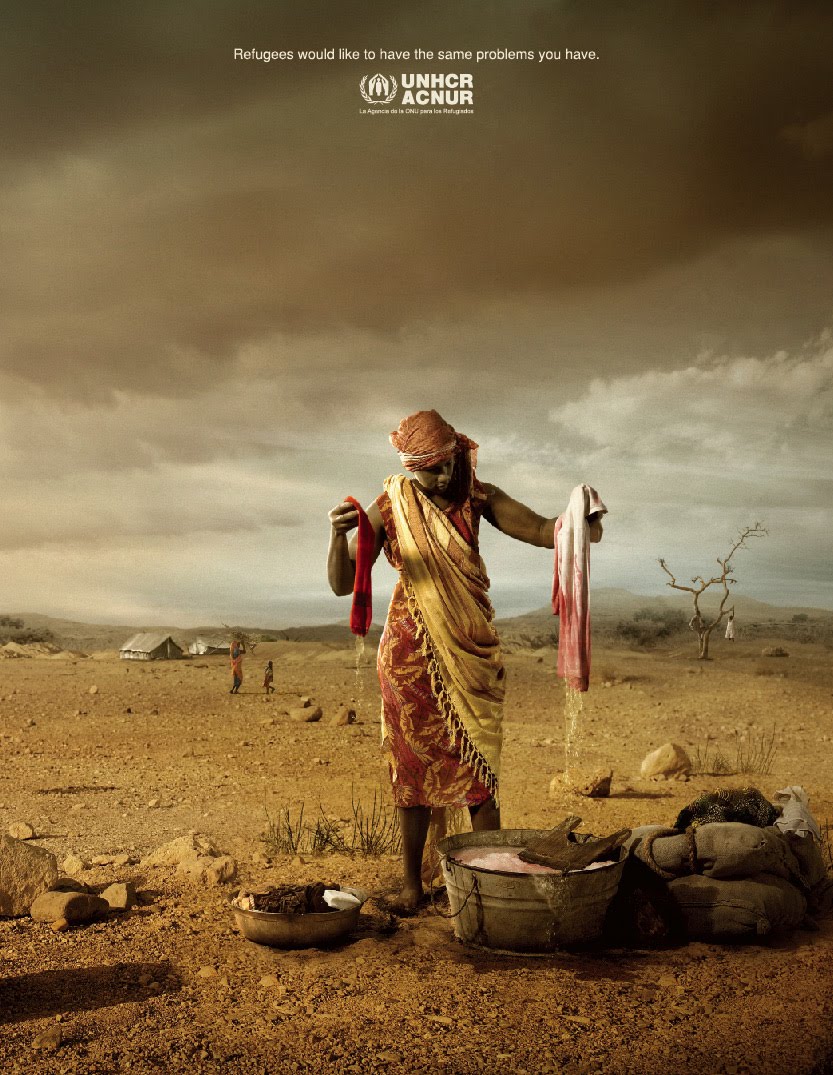 Los refugiados no tienen los mismos problemas que tu tienes.... Gráfica para UNHCR ACNUR la agencia de la ONU para los Refugiados.