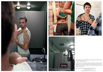 Tatuajes sin tatuar martes, diciembre 08, 2009 | 2 Comments Para que veas como se te ve un tatuaje, Dermagraphics Tattos colocó stickers de tatuajes en los espejos de los baños, así el que se vea puede probarse como se le ve el arte marcado en su cuerpo. Share This Post : Tags : Guerrilla Artículo siguiente > < artículo anterior