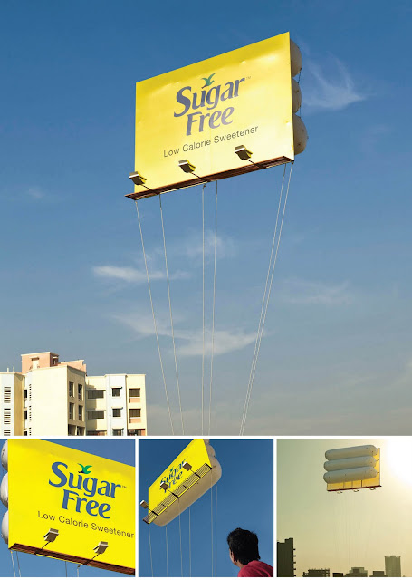 Los creativos de la agencia Rediffusion Young & Rubicam en India se idearon esta cartelera para promocionar los beneficios del endulzante Sugar Free. Una cartelera que a la vista nos da la percepción de ligereza.