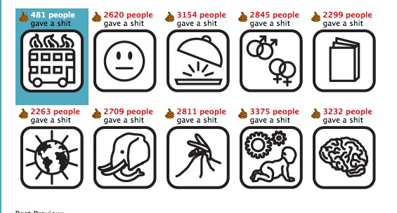 Give-a-Shit.org no pide una donación común, no pide dinero, sólo piden que " te importe una mierda". Pero no tienes que empacarla y enviarnola vía correo postal o paquetería, sólo escoge una causa y a que le quieres donar una mierda.