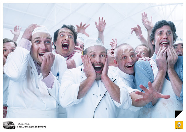 Para presumir que tienen 4 millones de fans en Europa, la agencia Publicis Francia desarrolla esta gráfica para la marca Renault. Veo una delgada línea con el , por otro lado no se si al mercado le agrade verse como niña gritona. Polémica la gráfica.