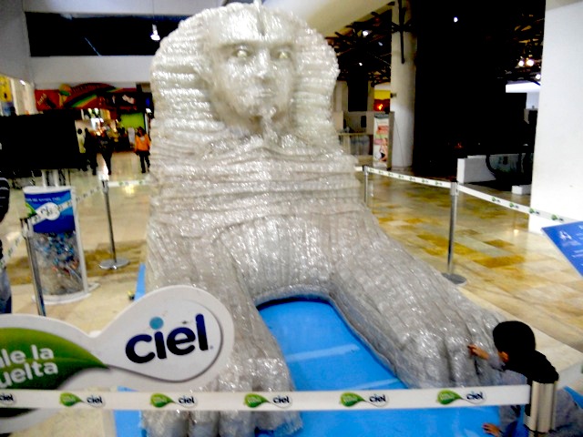 Caminando por un centro comercial, me encontré con estas instalaciones creados por la marca Ciel para promover su nuevo envase ecológico. Con el concepto "Dale la vuelta" los paseantes admiraban las maravillas del mundo hechas con puros envases reciclados de la marca Ciel.