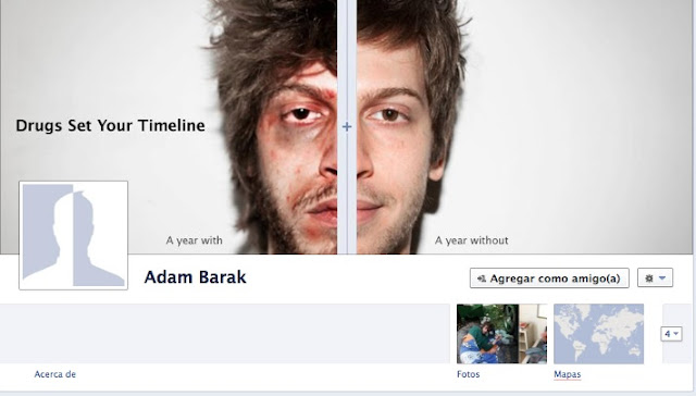 La Autoridad Anti-Drogas en Israel hace uso de la nueva modalidad de Timeline del Facebook para hacerse publicidad y mostrar la vida sin drogas y con ellas. Es el perfil de Adam Barak, verás fotografías de la vida del protagonista en sus dos facetas.