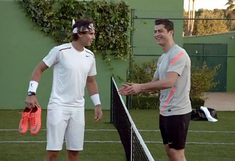 NIKE une a dos estrellas Rafael Nadal y Cristiano Ronaldo, en un encuentro de tenis y fútbol, cada uno utilizando lo mejor que sabe usar las piernas y la raqueta.