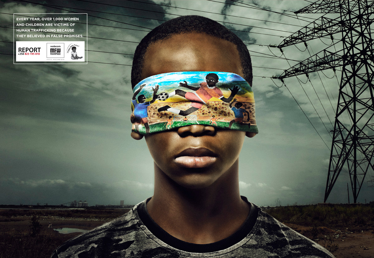 Acertada la solución creativa a esta campaña que busca crear conciencia sobre el tráfico de personas, un problema que lamentablemente sigue tan latente como en el siglo XIV. La manera de resolverlo fue generar unas vendas en los ojos con la ilusión y la mentira que les hacen creer los criminales. La idea salio de la agencia: DDB Mozambique para el Instituto Criança Nosso Futuro.