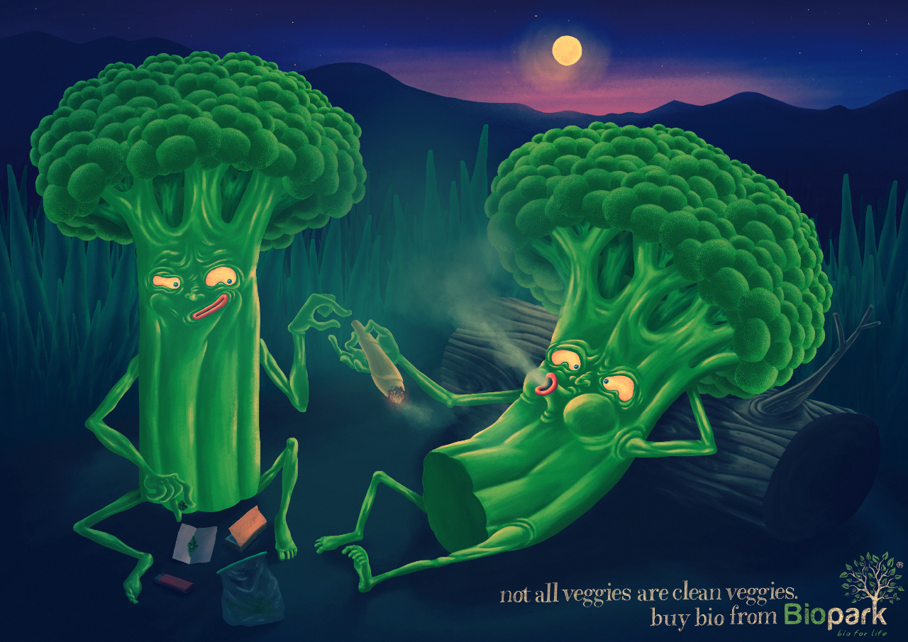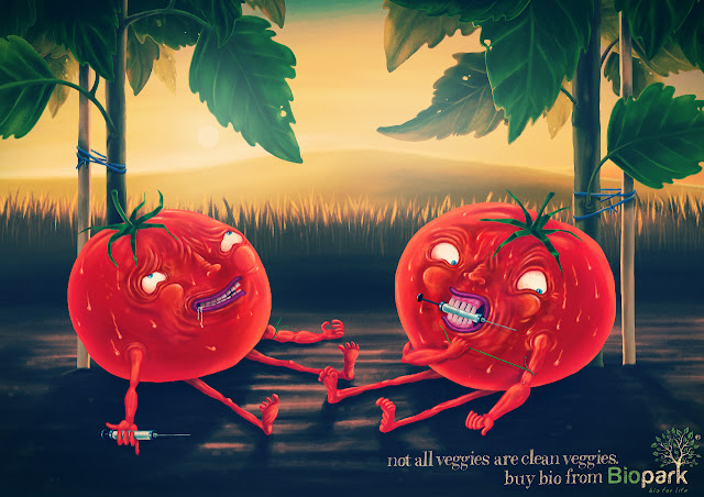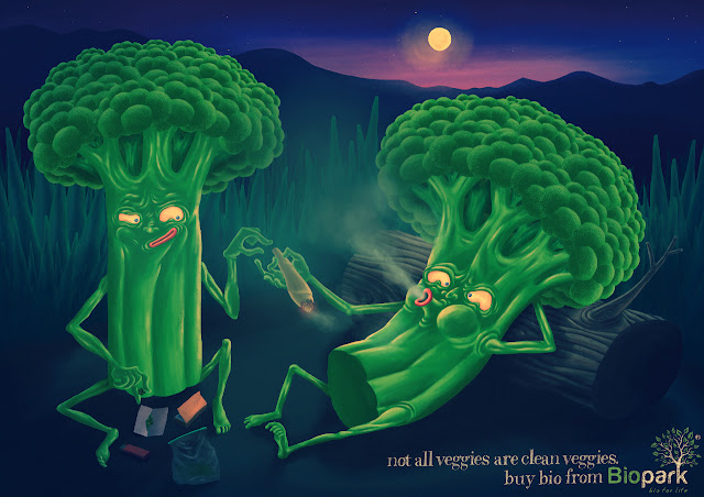 De ahí prosigamos a esta gráfica creada por la agencia Jandl en Eslovaquia para Biopark, donde nos muestra de manera literal que algunos vegetales, por decir que la mayoría están contaminados con algo, y ese algo no lo comemos nosotros, por lo que te invitan a valorar más la comida orgánica especialmente la de esta marca. Interesante y divertido el concepto.