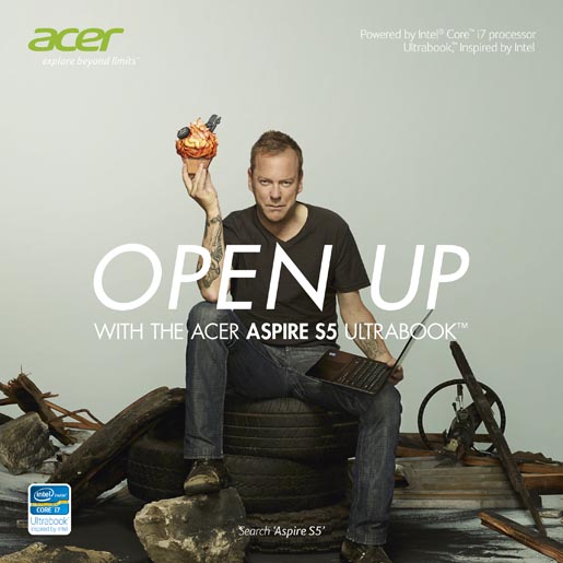 Para promover la nueva Acer Aspire S5 Ultrabook, se pidio apoyo a Kiefer Sutherland en su actuación de Jack Bauer para destacar (un poco) las características de esta máquina. Al final, creo que la historia y por supuesto que Mr. Sutherland se llevan la historia.