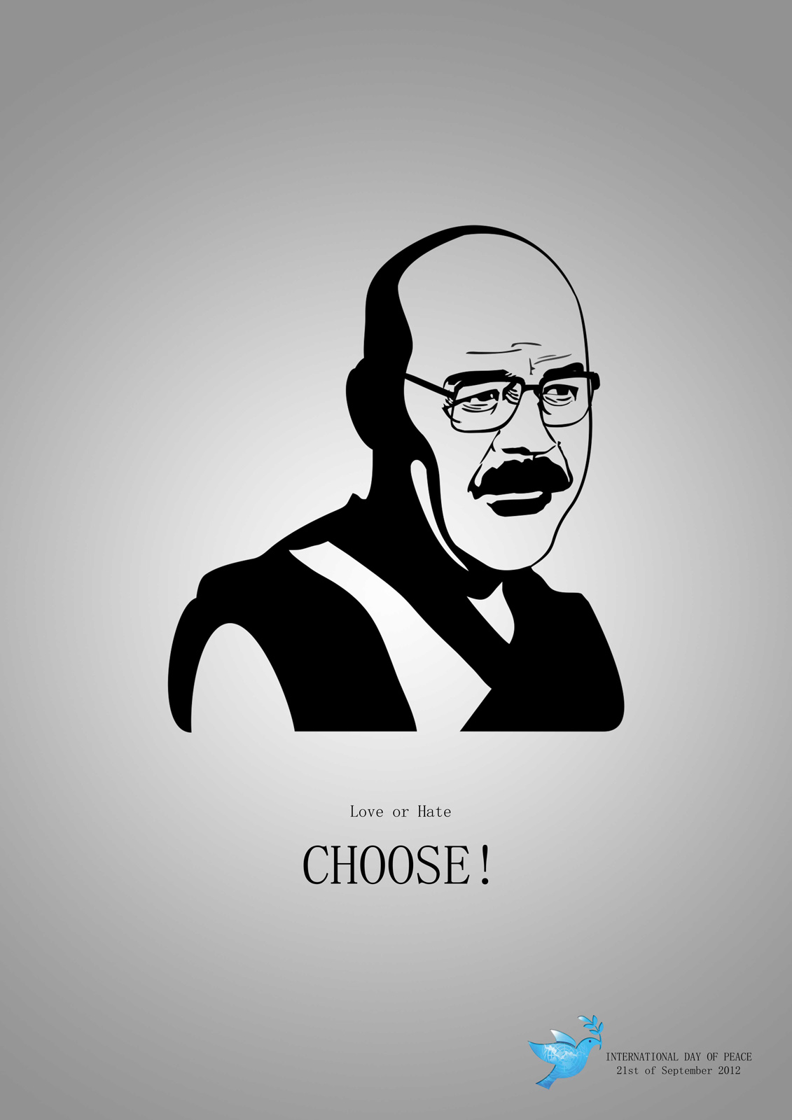 Este viernes 21 de septiembre, se conmemora en algunas partes del mundo el Día de la Paz Mundial, para este homenaje la agencia I&I en la India, desarrolla esta campaña gráfica, donde muestra a personajes híbridos, una mezcla de "pacifistas" y "tíranos" a eso le agregan un copy que dice: LOVE or HATE Choose.