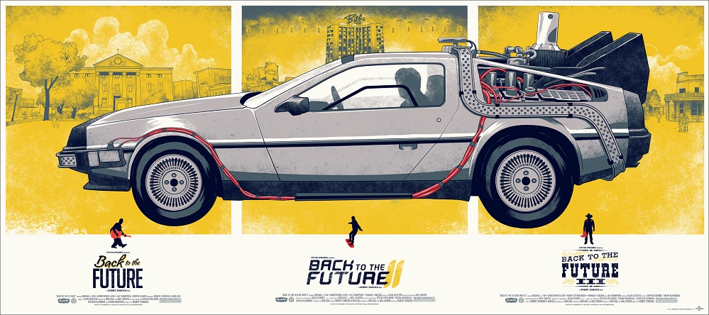 Aquí una serie de tres carteles que juntos forman la imagen del auto más aspirado por muchos el famoso Delorean. Este arte para la trilogía "Back to the future" fue generado en las oficinas de Phantom City Creative. Seguramente estará decorando las oficinas y habitaciones de muchos fans de la serie. Aplausos!