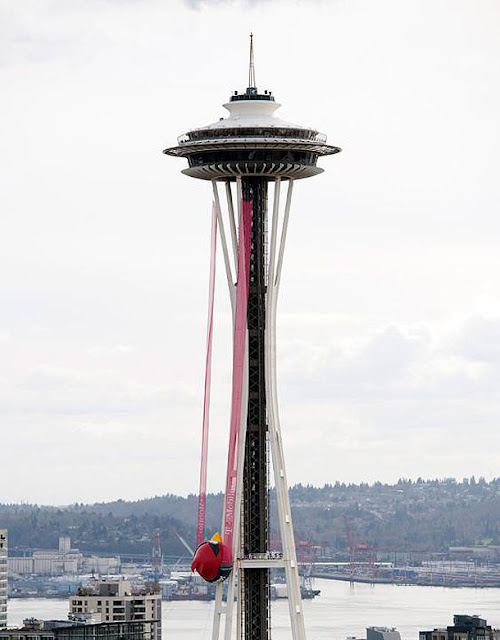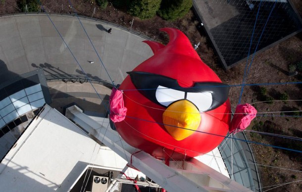 Para promover el popular y adictivo juego de "Angry Birds Space" T-Mobile toma dos puntos turísticos de Seattle especialmente los relacionados con el espacio como el "Obelisco Espacial" y les agrega a uno de los principales del juego para ser lanzados al espacio.