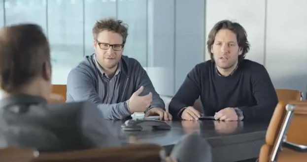 Estoy enganchado con la serie Breaking Bad, aquí hay un personaje que me cae bien, es el famoso abogado Saul Goodman, quien ahora lo veo en este comercial para Samsung con el mismo personaje (supongo) cuidando a los actores Paul Rudd y Seth Rogan para que no mencionen nombres registrados para este Super Bowl.