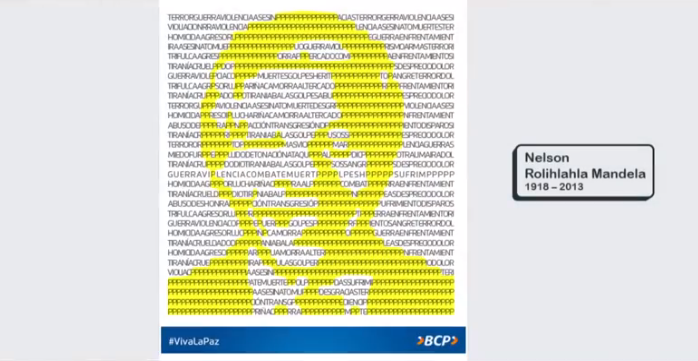 Esta es una acción digital que me movió mucho, fue creada para el banco Peruano BCP el día Internacional de la Paz. La campaña se título CTRL + Finding Peace, la cual tenía como objetivo incitar a los usuarios de Facebook a encontrar la paz, en medio de tantas noticias llenas de violencia y de odio.