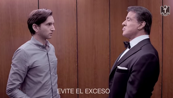 Y para hacer más memorable su patrocinio, contrataron los servicios del mismisimo "Rocky Balboa", que su papel es mencionar una frase que muchos por acá necesitan: "Te hace falta ver más box" en un tono gabacho, con una actitud muy masculina, que lo hace gracioso y creíble.