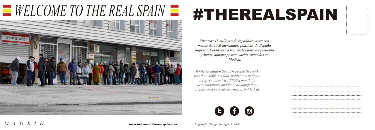 Para lograrlo, crearon una serie de postales que reflejan "la realidad" de España, las postales fueron colocadas en tiendas de souvenirs con el nombre "Welcome to the Real Spain". Un impacto duro, pero necesario. Aquí les comparto el video de promoción, así como algunas de las postales.