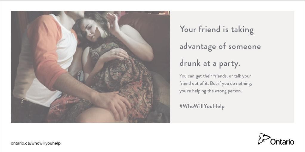 #Whowillyouhelp? es una campaña creada por la agencia Leo Burnett para la ciudad de Ontario. Tiene como objetivo aumentar las denuncias del acoso, en cualquiera de sus dimensiones. Para lograrlo, presentan una serie de cuatro casos donde el acosador agradece el silencio de quien lo observa, en este caso, nos convierten en testigos, uniéndonos de manera perversa a a la trama.