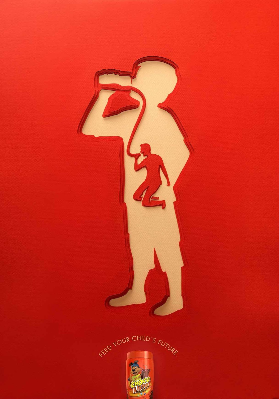 Mire usted esta campaña gráfica creada para Chocolisto creada por la agencia Rep Grey en Colombia, una idea atractiva visualmente con un mensaje poderoso para cualquier padre de familia que quiere que sus chamacos sean astronautas, cantantes o bailarines, según sea el caso.