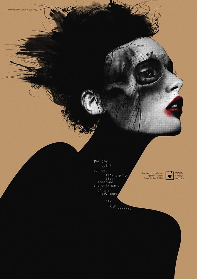 Atractiva campaña gráfica creada por la agencia brasileña Bolero, que va directo contra la violencia y el maltrato femenino. Una campaña que parecieran retratos artístico, pero si vemos un poquito más cerca el mensaje es poderoso.