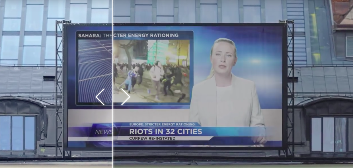 El spot que estoy por describirle, nos presenta una vida futura en dos ángulos: "el bonito" y "el feo", haciéndonos responsables de decidir cual queremos ver con el puntero de su mouse. Y en la vida real te preguntan, "¿Qué futuro le quieres dejar a tus hijos?". Un buen video para reflexionar.