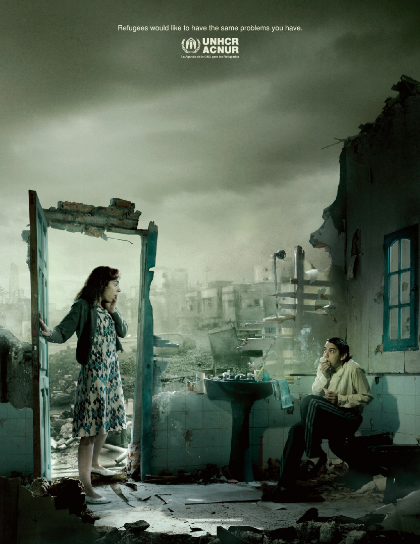 Los refugiados no tienen los mismos problemas que tu tienes.... Gráfica para UNHCR ACNUR la agencia de la ONU para los Refugiados.