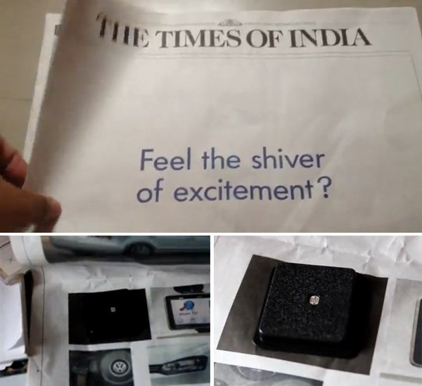 En un anuncio de doble página, Volkswagen colocó una frase sugerente que decía. "Sientes el temblor de la exitación?" Al darle la vuelta a la hoja estaba insertado una pequeña cajita vibradora.